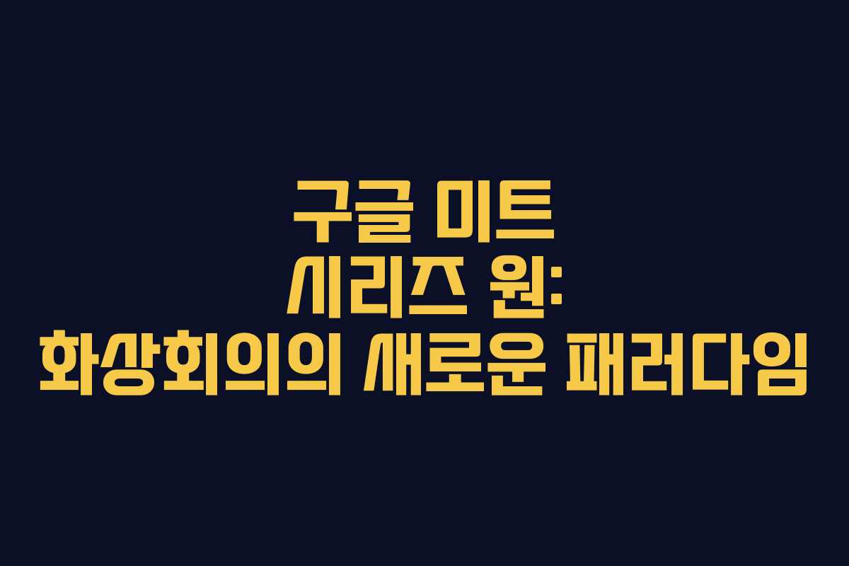 구글 미트 시리즈 원: 화상회의의 새로운 패러다임