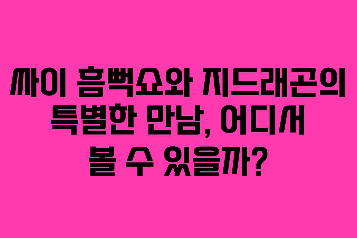 싸이와 지드래곤의 콜라보는 팬들에게 큰 기대감을 안겨주고 있으며, 두 아티스트의 에너지가 만들어낼 시너지는 정말로 매력적입니다.