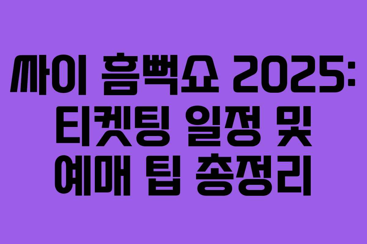 2025년 싸이 흠뻑쇼가 돌아옵니다! 이번 공연은 NFT 선예매부터 시작해 일반 예매 일정, 지역 공연 날짜 및 장소, 예상 티켓 가격과 좌석 구분, 예매 성공을 위한 팁까지 다양한 정보를 제공합니다. 서울, 부산, 인천 등에서 열리는 공연을 놓치지 않기 위해 필요한 모든 내용을 정리했습니다.