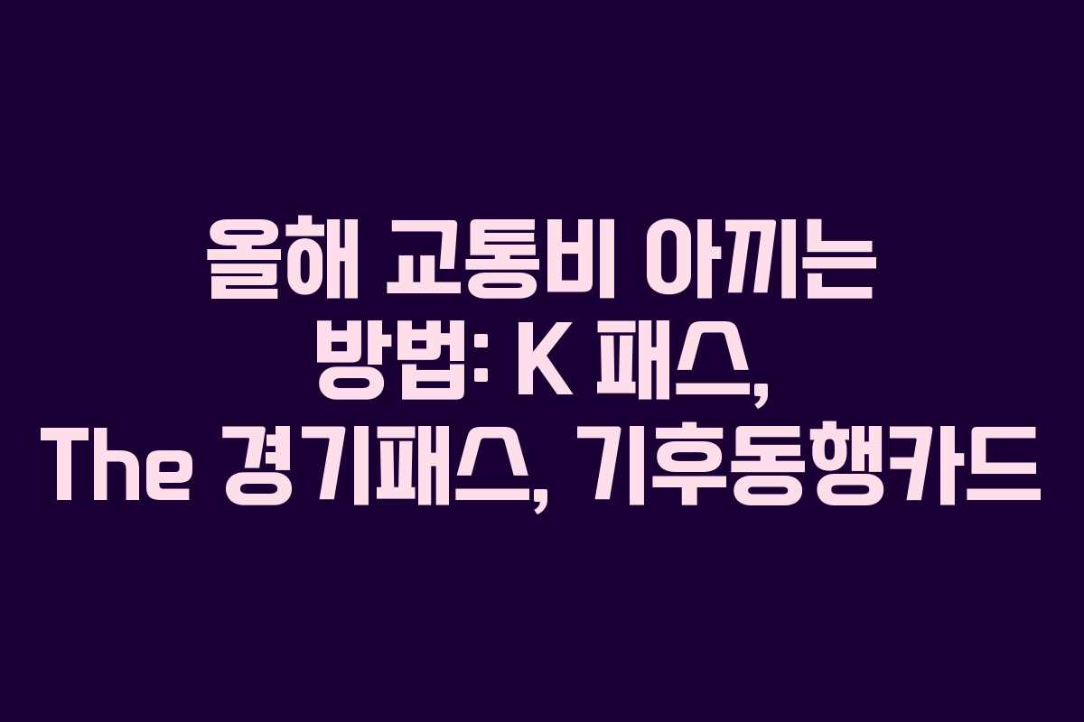 대중교통을 자주 이용하는 분들에게 좋은 소식이 있습니다. 서울시에서는 환경오염을 줄이기 위한 다양한 대중교통 이용 프로젝트를 도입했습니다. 특히, 기후동행카드와 K-패스, The 경기패스가 올해부터 시행되어 교통비 절감에 도움을 줄 것입니다.