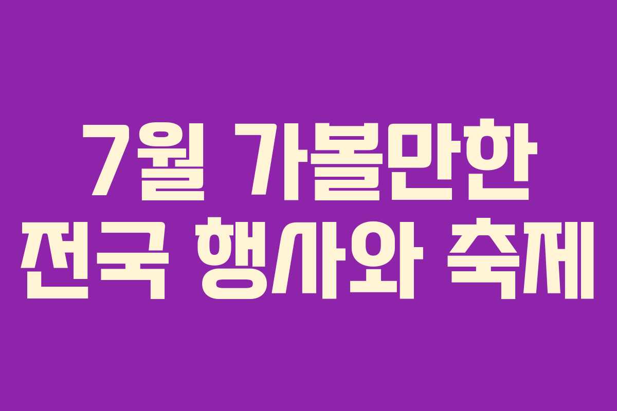 7월은 여름의 시작을 알리는 달로, 다양한 축제와 행사들이 전국 곳곳에서 열립니다. 이번 글에서는 2020년 7월에 진행될 행사와 축제들을 소개하겠습니다.