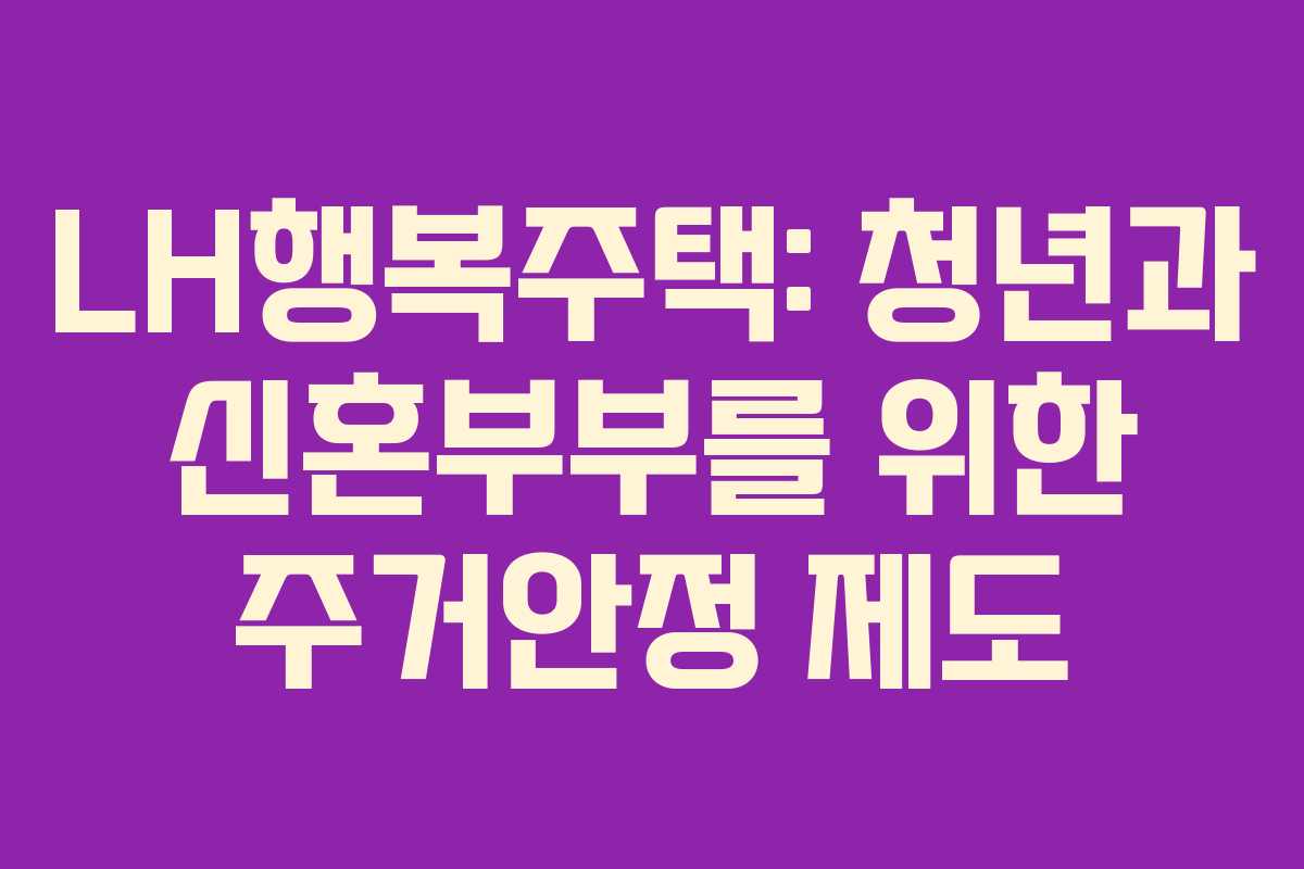 LH행복주택은 주로 청년과 신혼부부를 위한 주거안정 제도입니다.